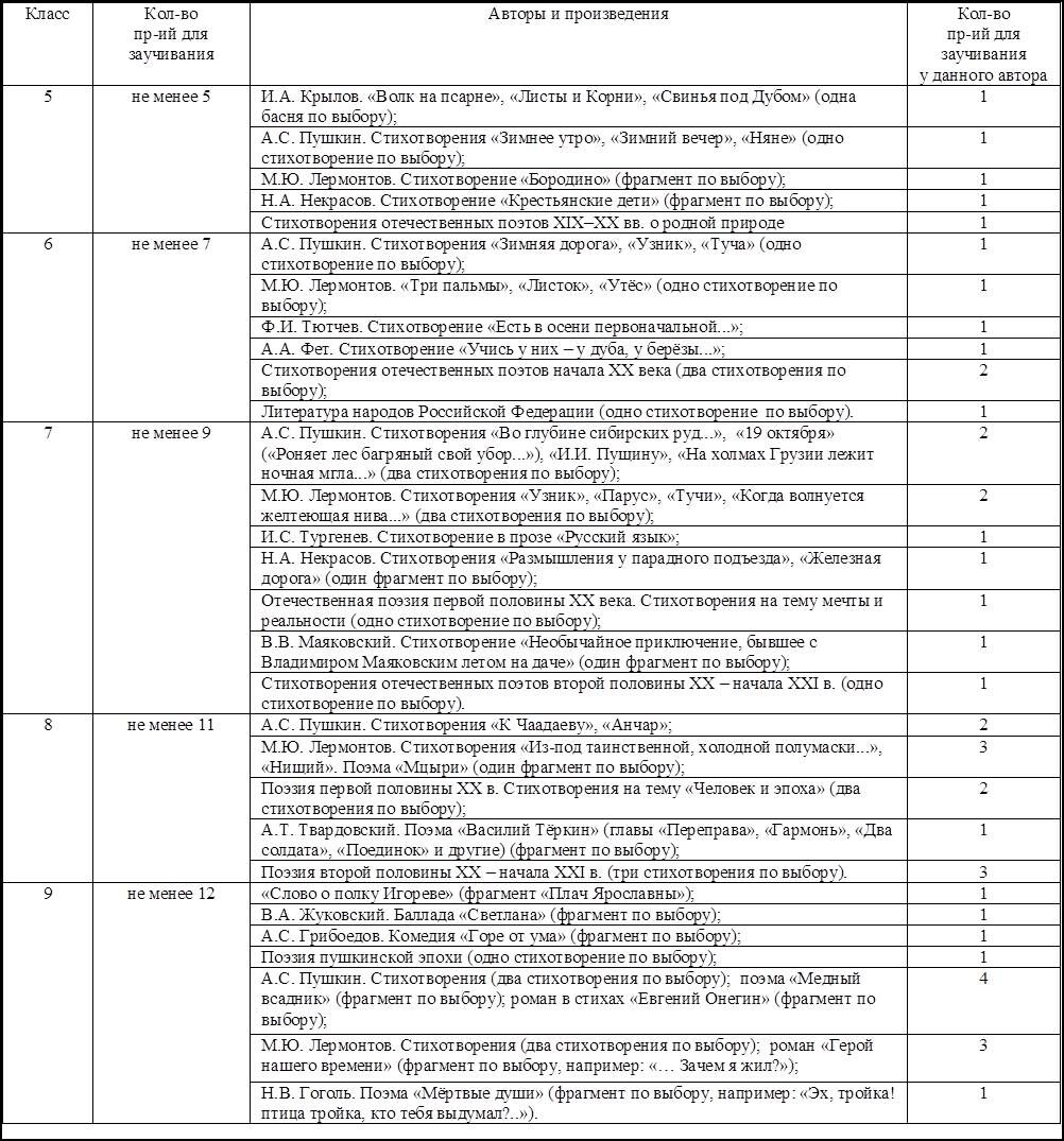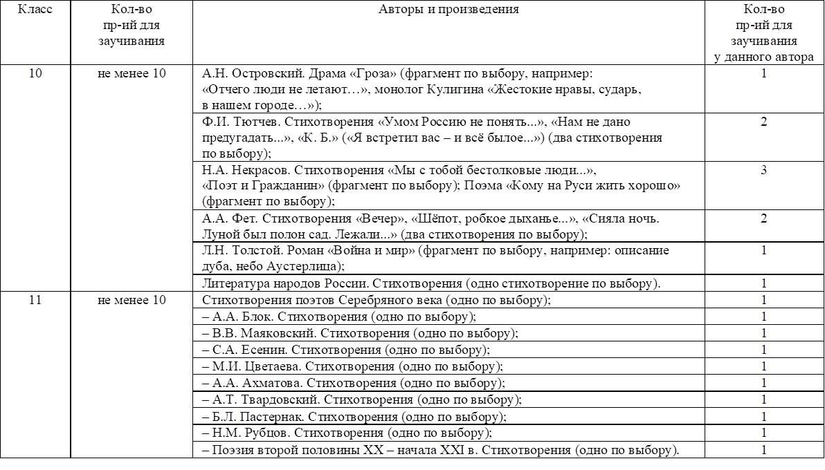 В ФРП ООО и ФРП СОО в разделе "Предметные результаты" указано минимальное количество произведений для заучивания в каждом классе. Вместе с тем среди словесников есть запрос на определение примерного перечня произведений, которые могут быть предложены школьникам для заучивания наизусть.